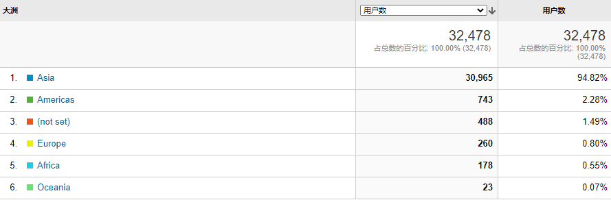 1.通过谷歌推广亚洲地区用户3年时间增长3倍,亚洲地区访客占比超94%: