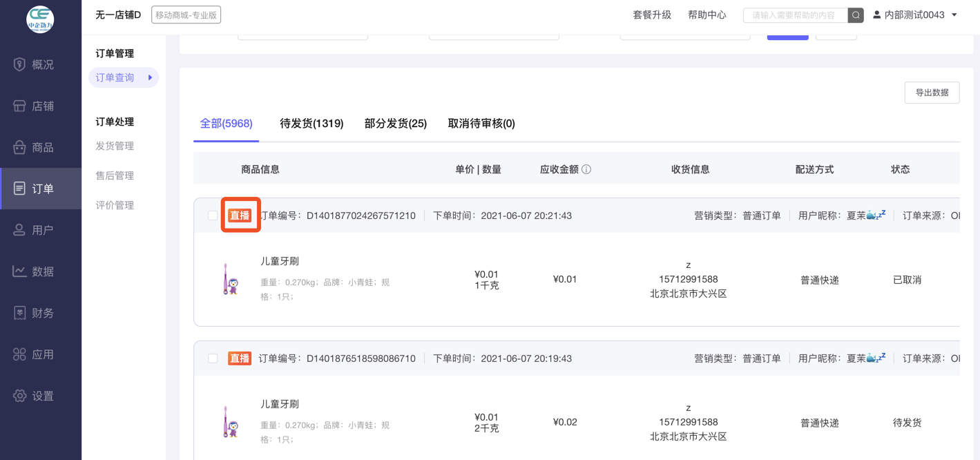3、订单列表增加直播订单标识
