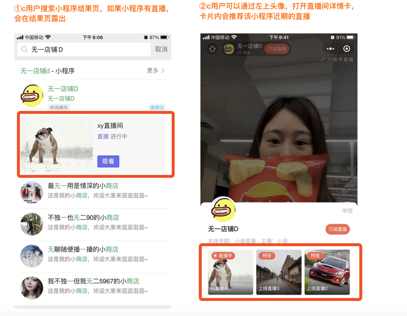 小程序直播入口及主要功能: