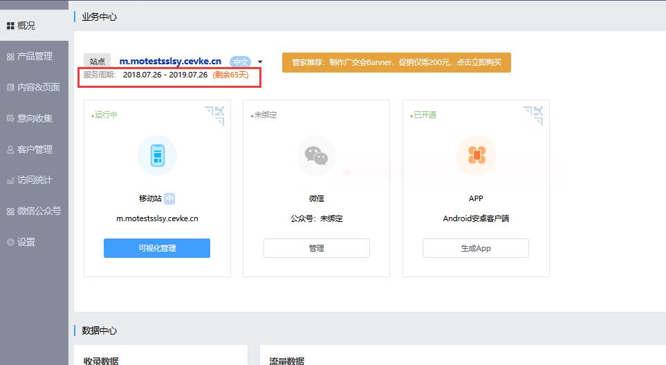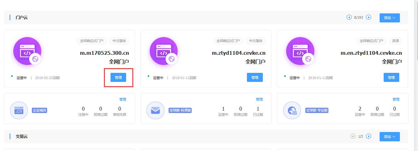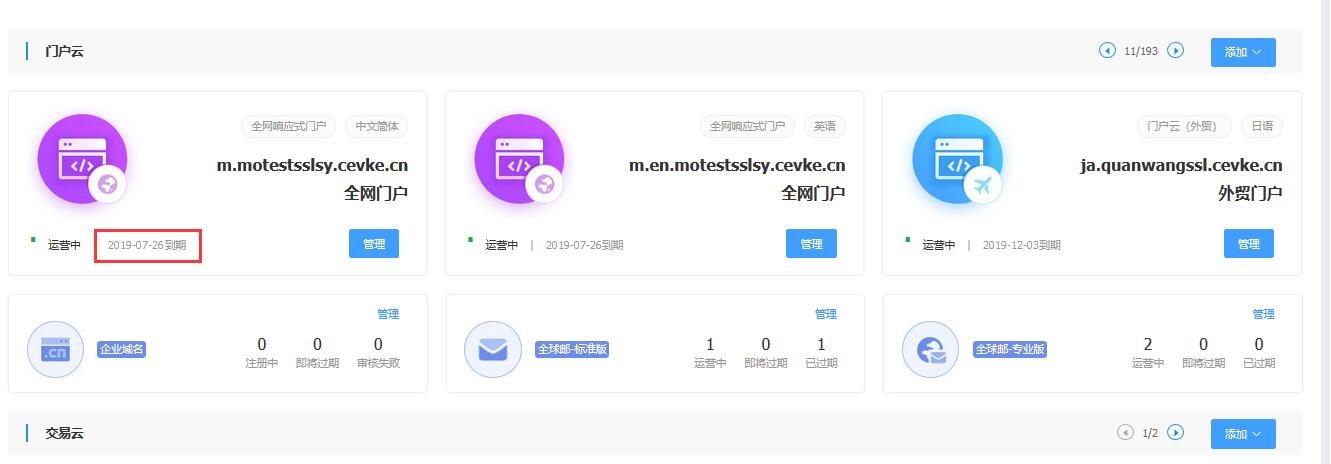 在【门户云】产品下,产品左下角会显示产品到期时间(如图一),或点击管理进入后也可查询到期时间(如图二、图三)