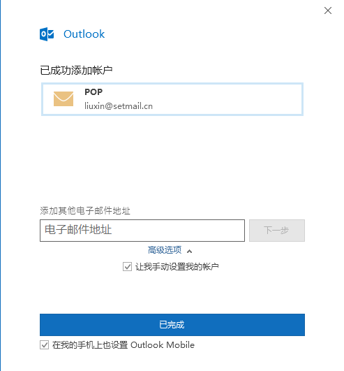 企业邮箱在outlook2016版本设置方法