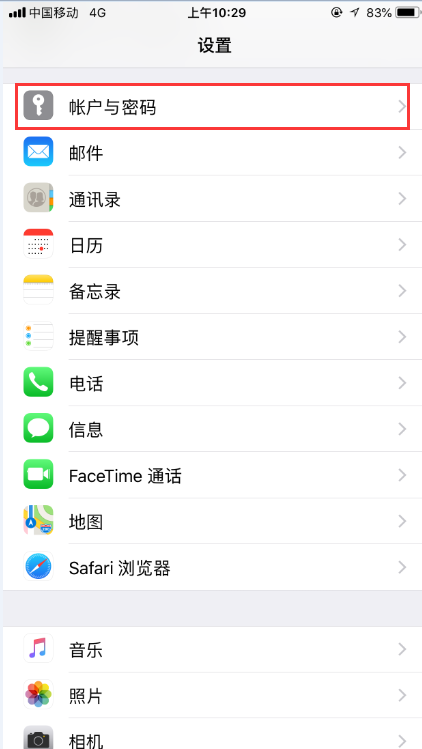 第一步,在桌面上找到【设置】—【账户与密码】—点击【添加账户】