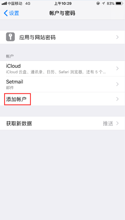 第六步,如无法正常收发,提示错误信息,请点击【设置】—【账户与密码】,选择【已添加的账号】,确认填写的服务器信息是否正确。