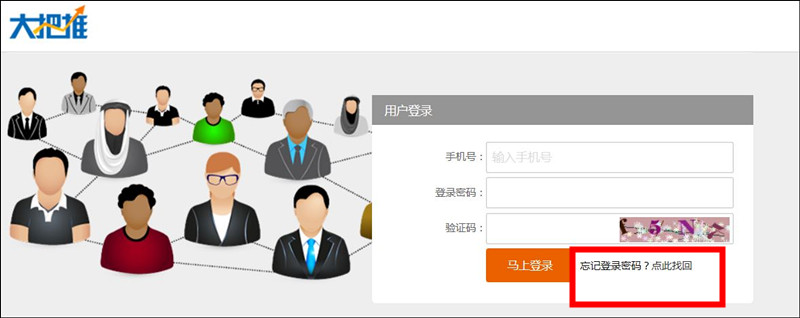 2)登录框中输入您登记的手机,点击忘记登录密码旁边的【点此找回】的按钮。