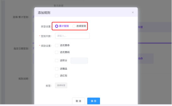 设置奖励:即客户每天签到可以赠送优惠劵,优惠码,积分,赠品,红包