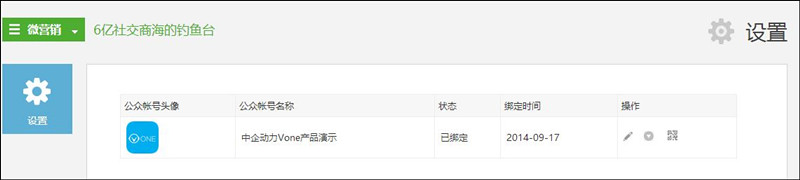 微营销可以绑定任何一个微信公众号,绑定后也可以重新更改绑定。