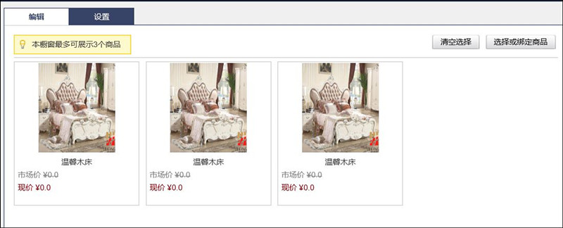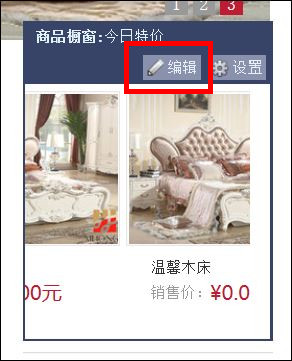 2、在网站首页找到【橱窗】的组件点击【编辑】按钮。