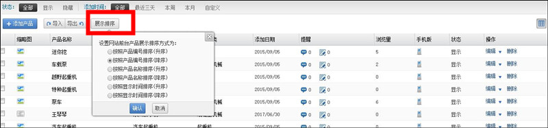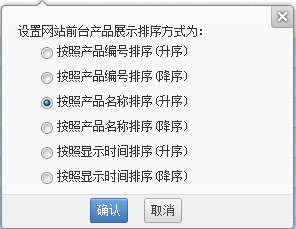 您可以根据页面提示选择所需的排序方式,点击【确认】按钮,系统提示前台排序方式设置成功。