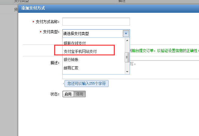 a. 企业官网 ZTS、NewZ+在后台添加支付方式是,支付类型请务必配置【支付宝手机网站支付】