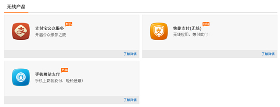 3、登录支付宝商家服务网站点击【产品商店】,在【无线产品】中,选【手机网站支持】。
